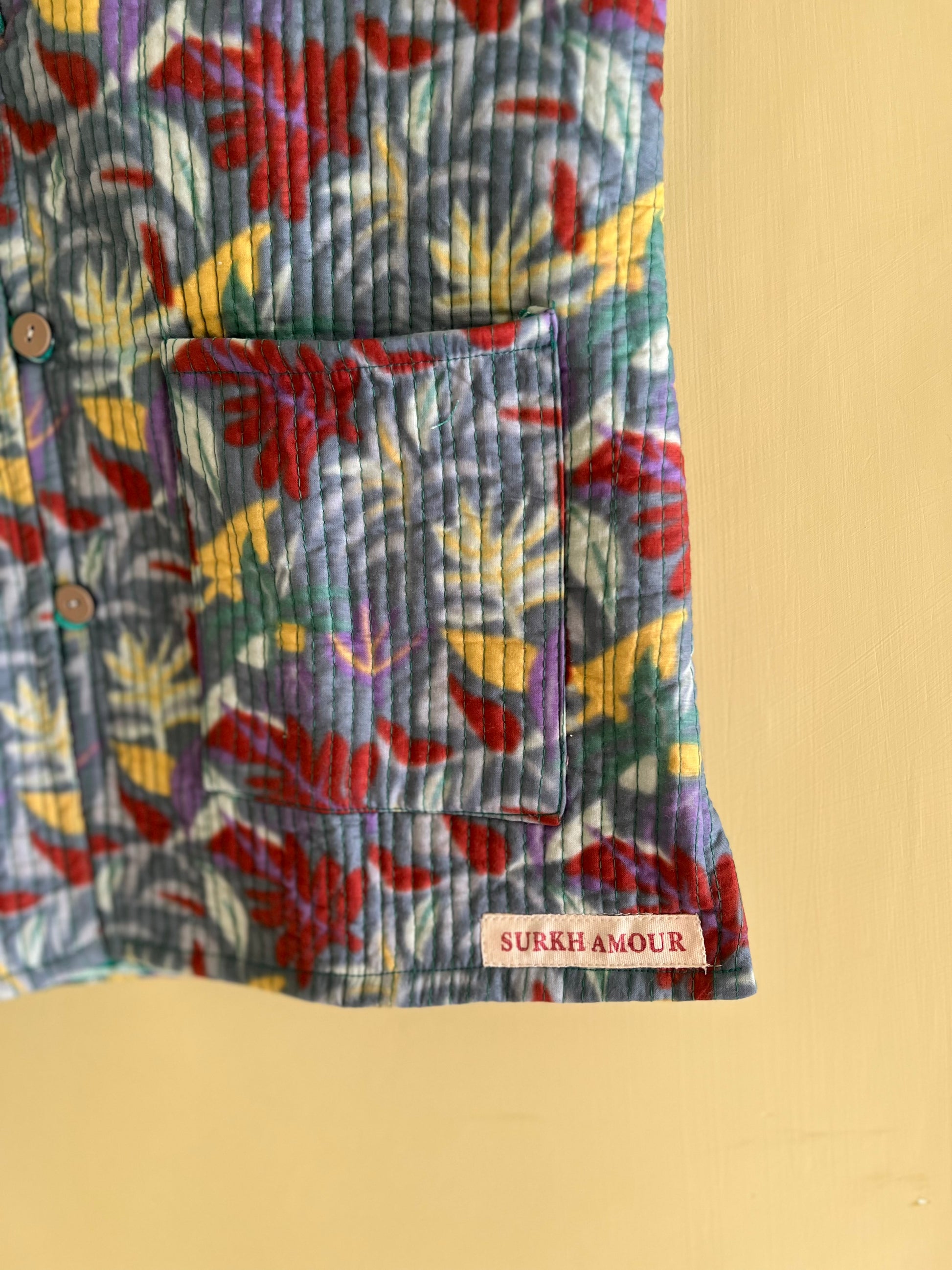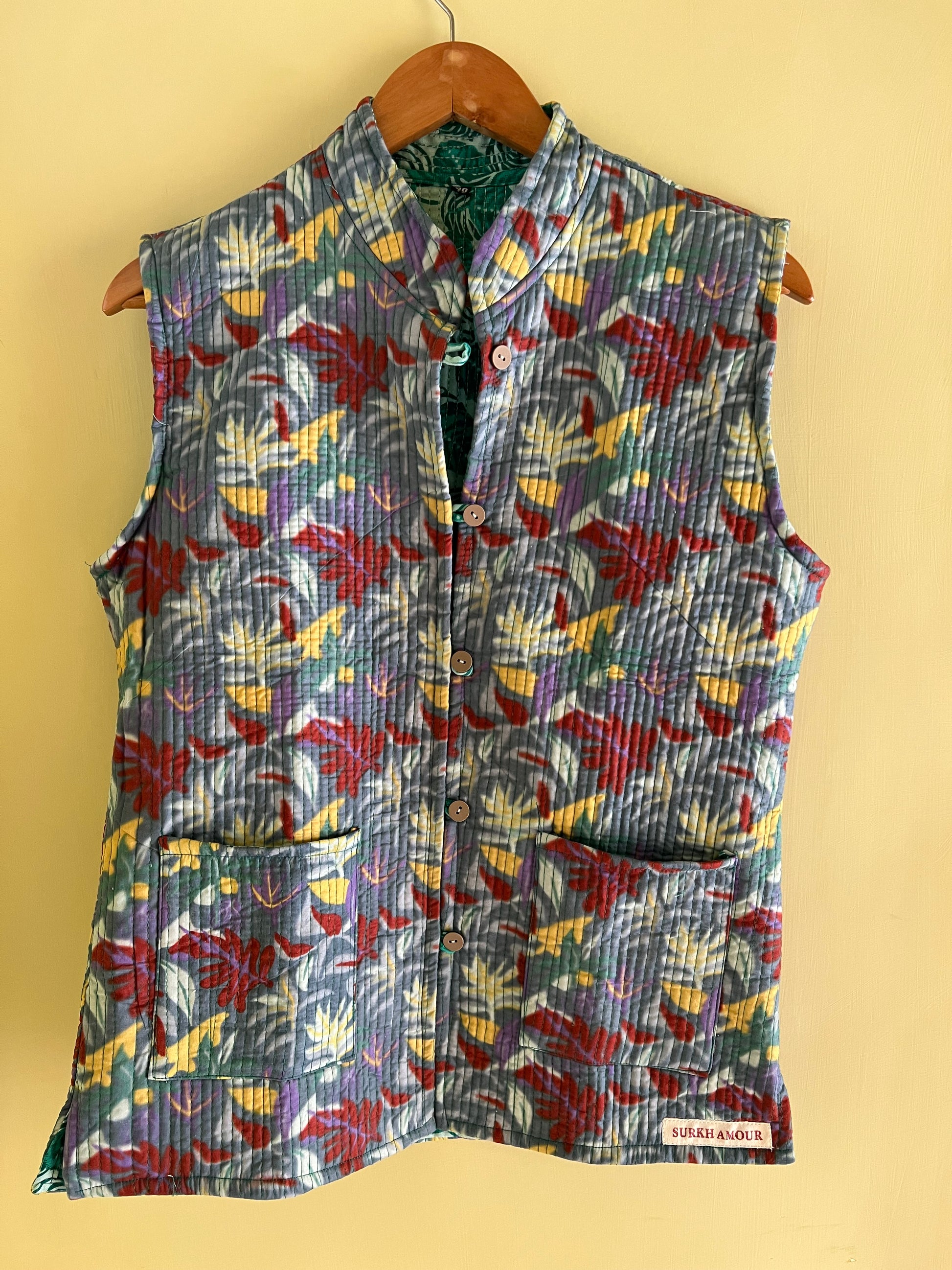 Grey Cut Sleeves Kantha Reversible Jacket